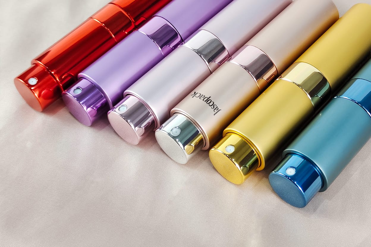 Our main materials are aluminum and plastic, which can be used for the outer shells protecting 20ml glass perfume bottles and the sprayers. They can all be customized in color, surface treatment, and logo printing.