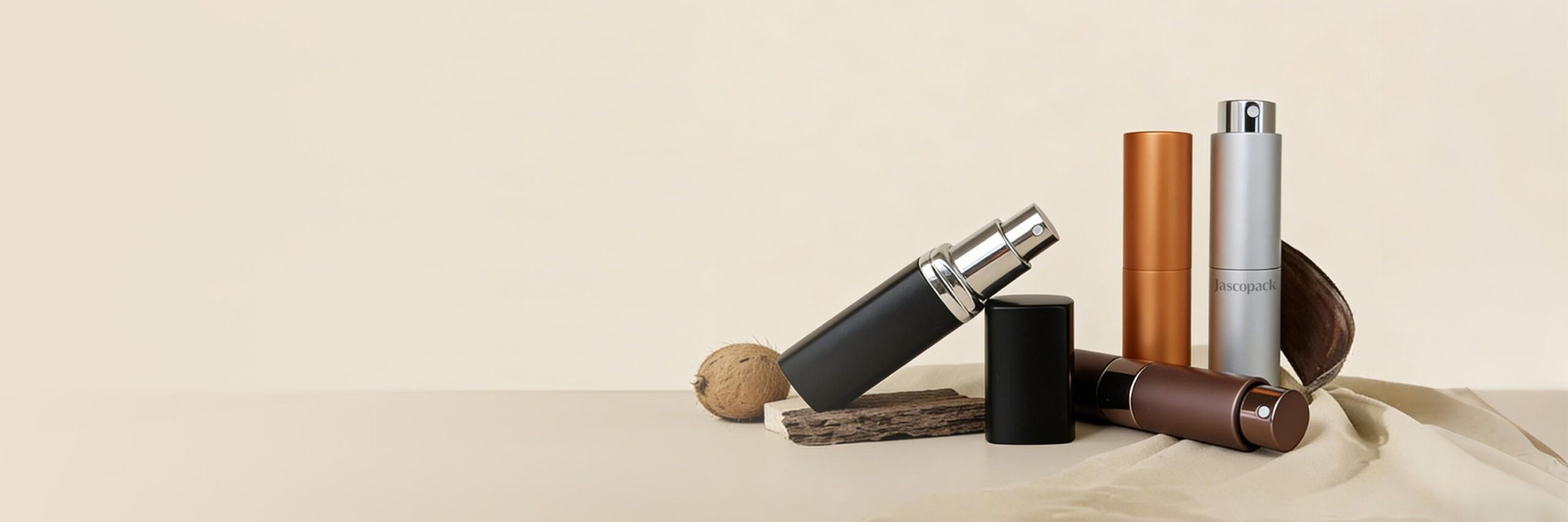 Jascopack primarily offers aluminum, glass, and plastic materials, suitable for 25ml perfume bottles.