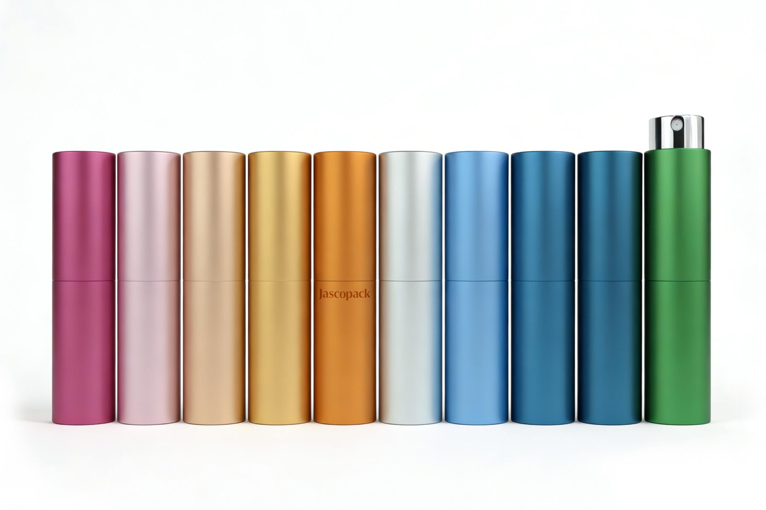 Jascopack offers a variety of surface finishes on different materials, including oxidized finishes, re-oxidized finishes, full-color spraying, gradient spraying, and electroplated finishes. These finishes are available not only for the bottle body but also for the nozzle.